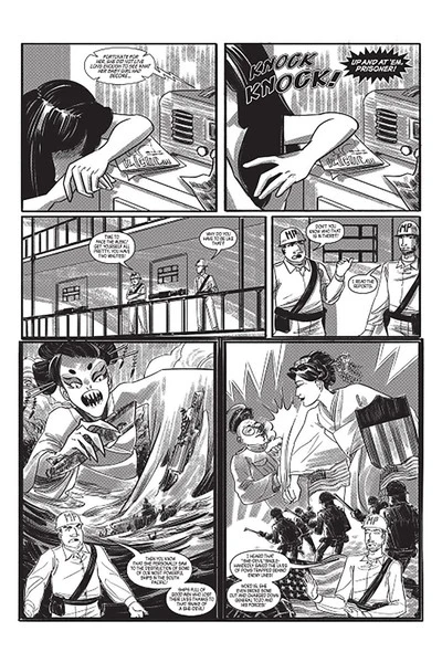 Tokyo Rose – Zero Hour: A Japanese American Woman’s Persecution and Ultimate Redemption after World War II features story by Andre Frattino and art by Kate Kasenow.
